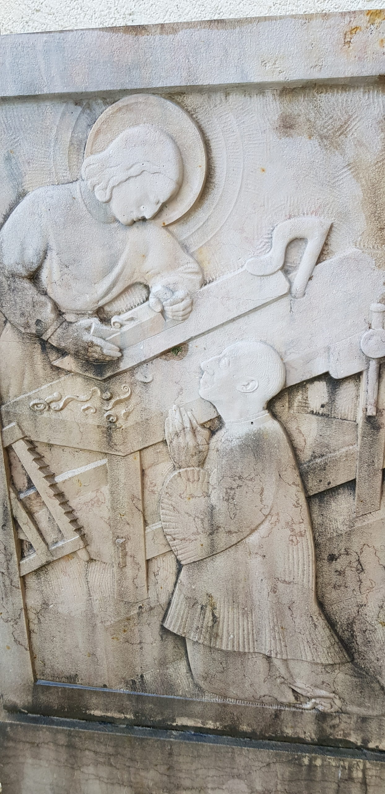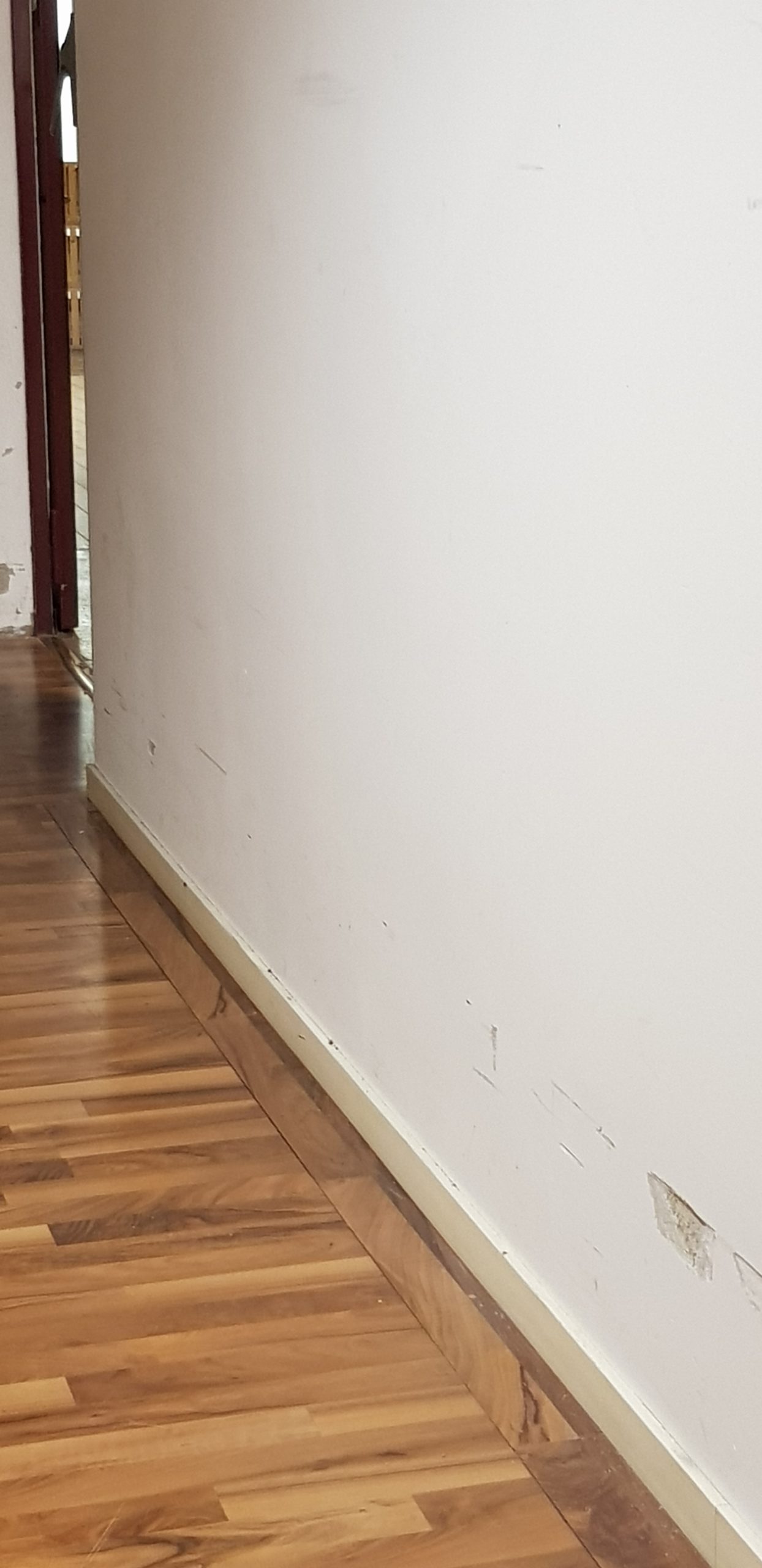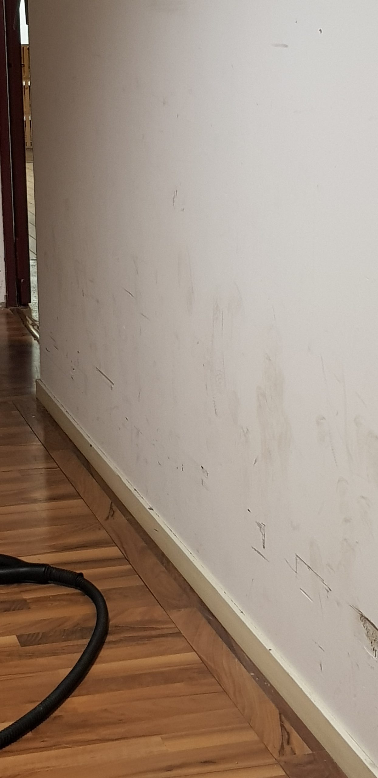 Traces sur les murs blancs et dalles extérieures